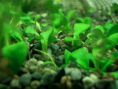 やっとピントが合いました♪(小さい上に素早いので難しいのだ...)あ、そだ。一緒に写ってる水草はミナミと一緒に買ったグロッソです。今朝植えました(笑)こちらも増えるといーなぁ。